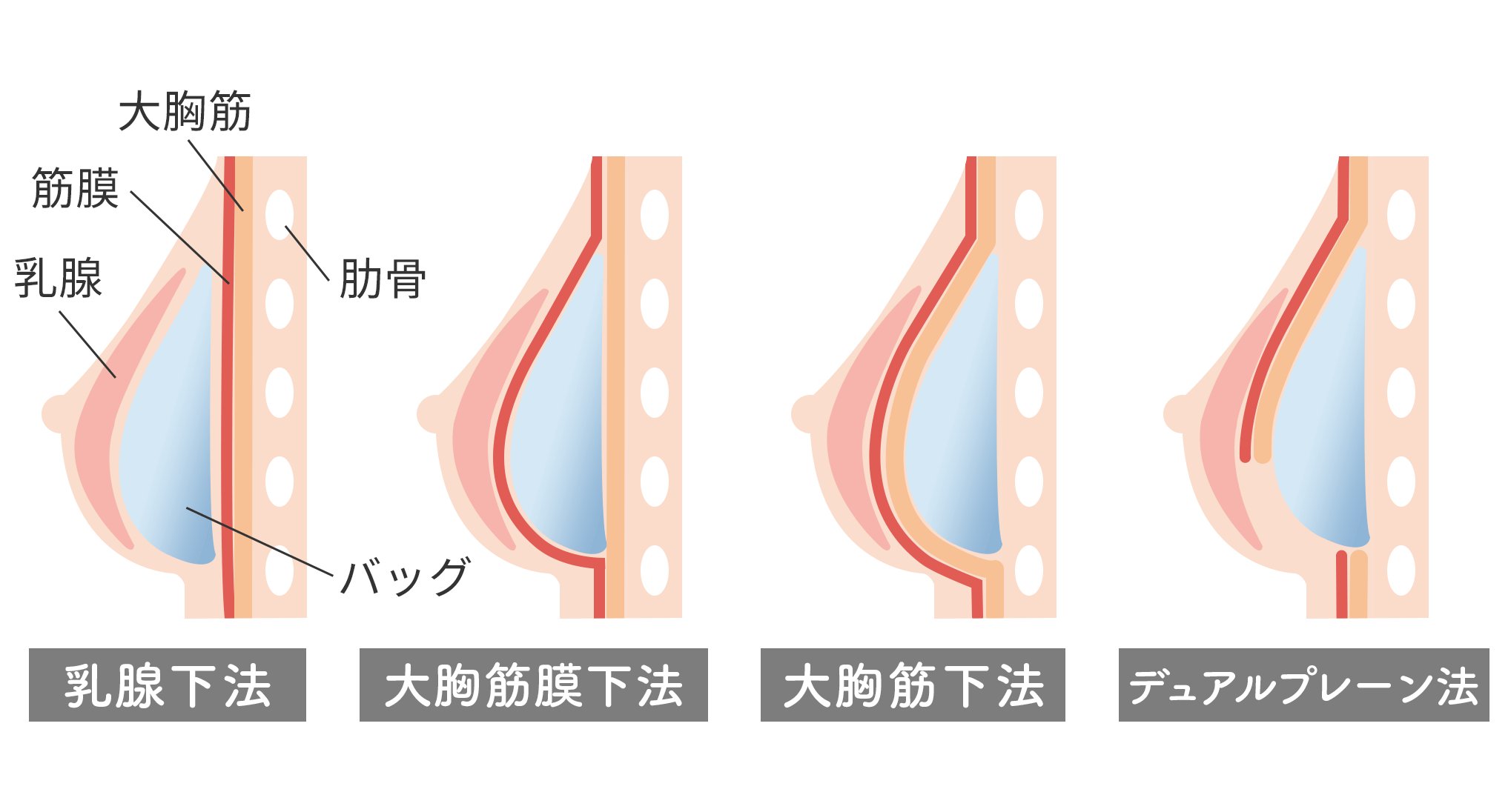 | 内容 | 脇の下やアンダーなどを切開し、シリコンバッグを挿入する | |